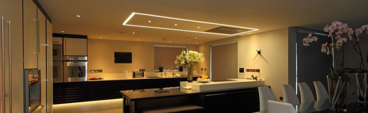 Kitchen Concept - Overhead Pendants - Downlighters , cupboard strip lights.